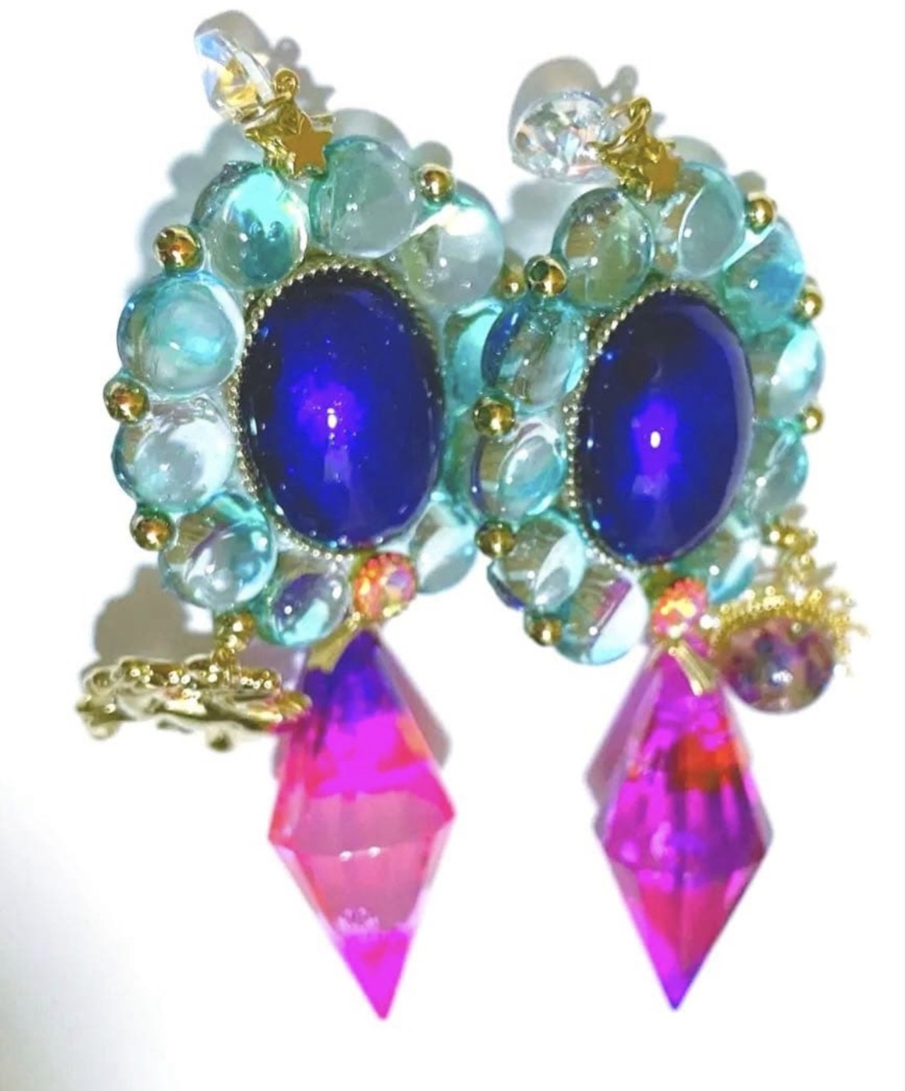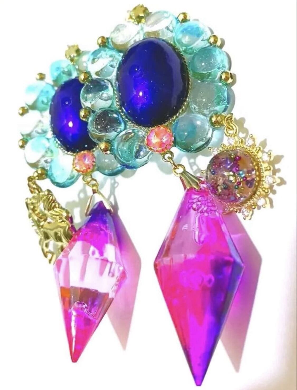 光を受けるたびに奥行きのある色合いが浮かび上がり、顔周りに華やかな存在感と印象を添えてくれます。