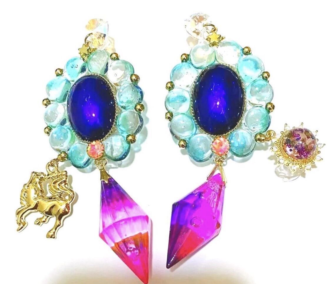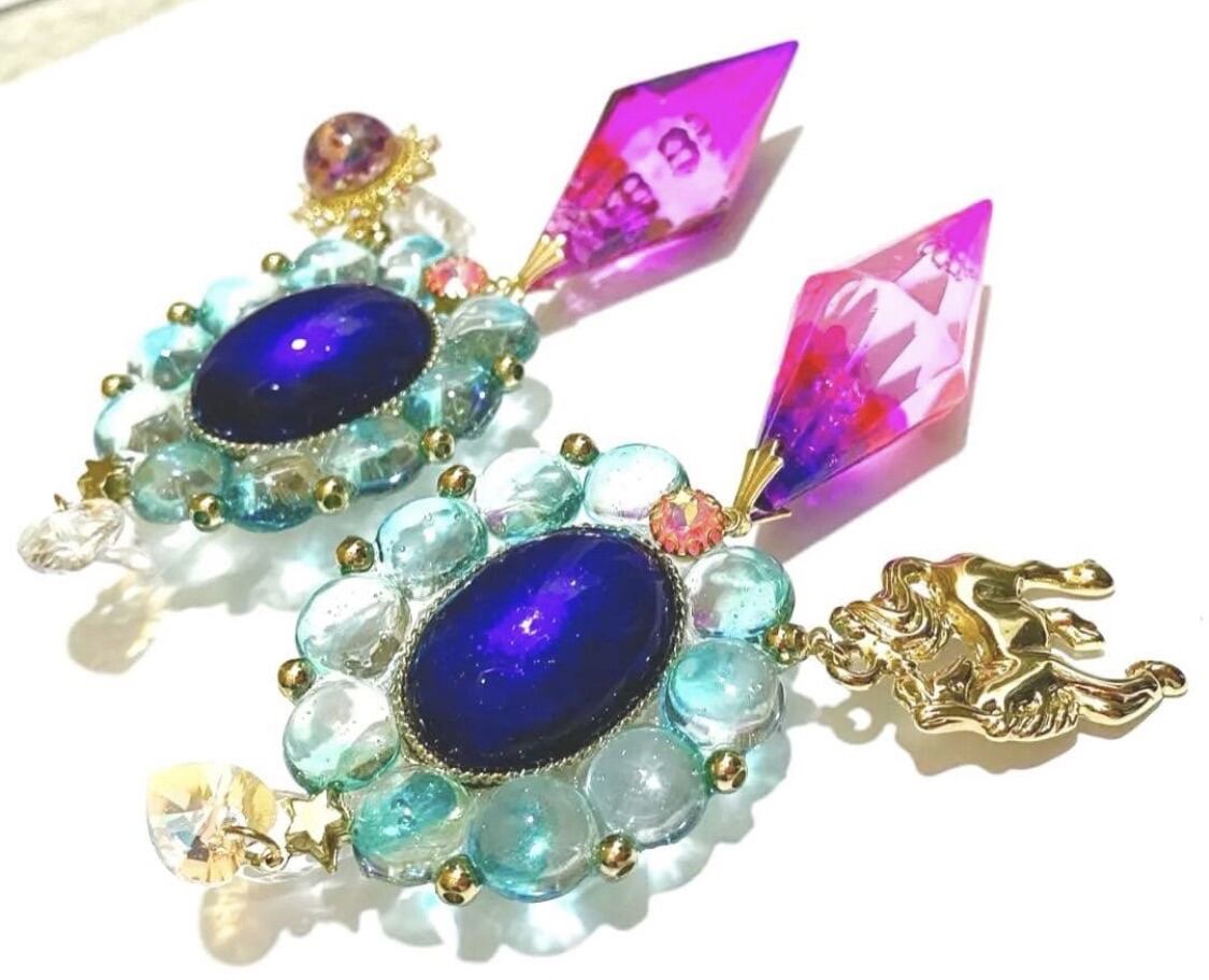 左右でチャームが異なり、片方には"ユニコーン"、もう片方は親和性の高い"太陽"のモチーフチャームになっています。