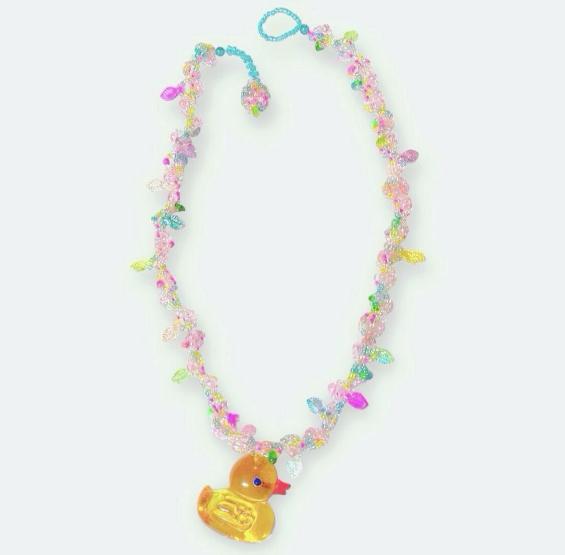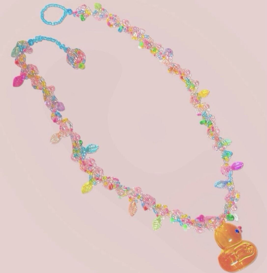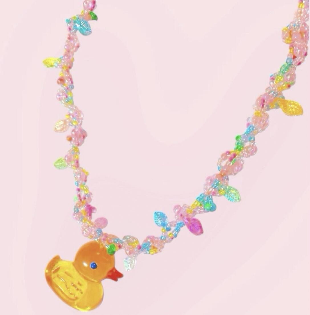 中央には小さなアヒルのチャームが揺れ、遊び心のある可愛らしいアクセントになっています。