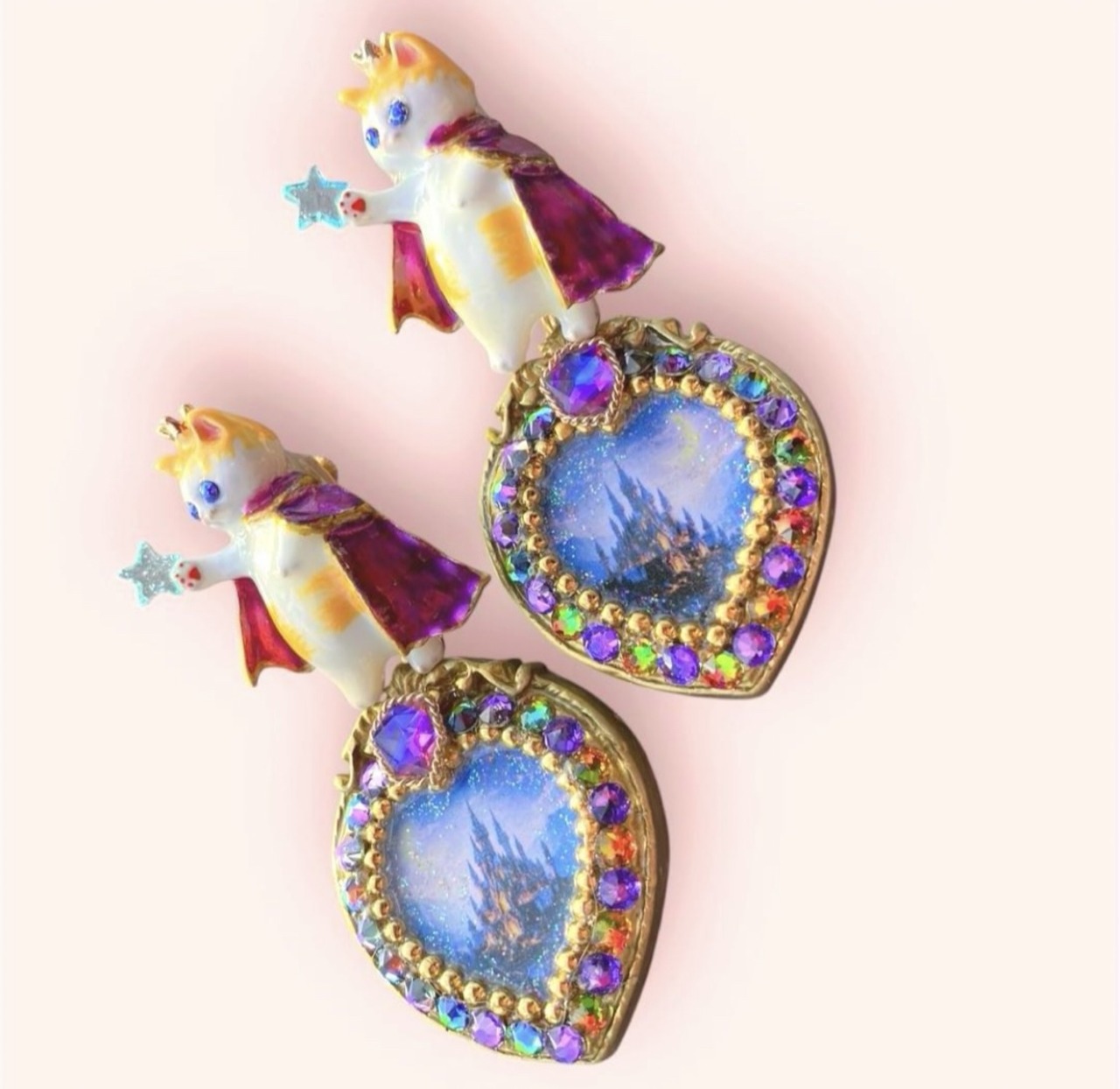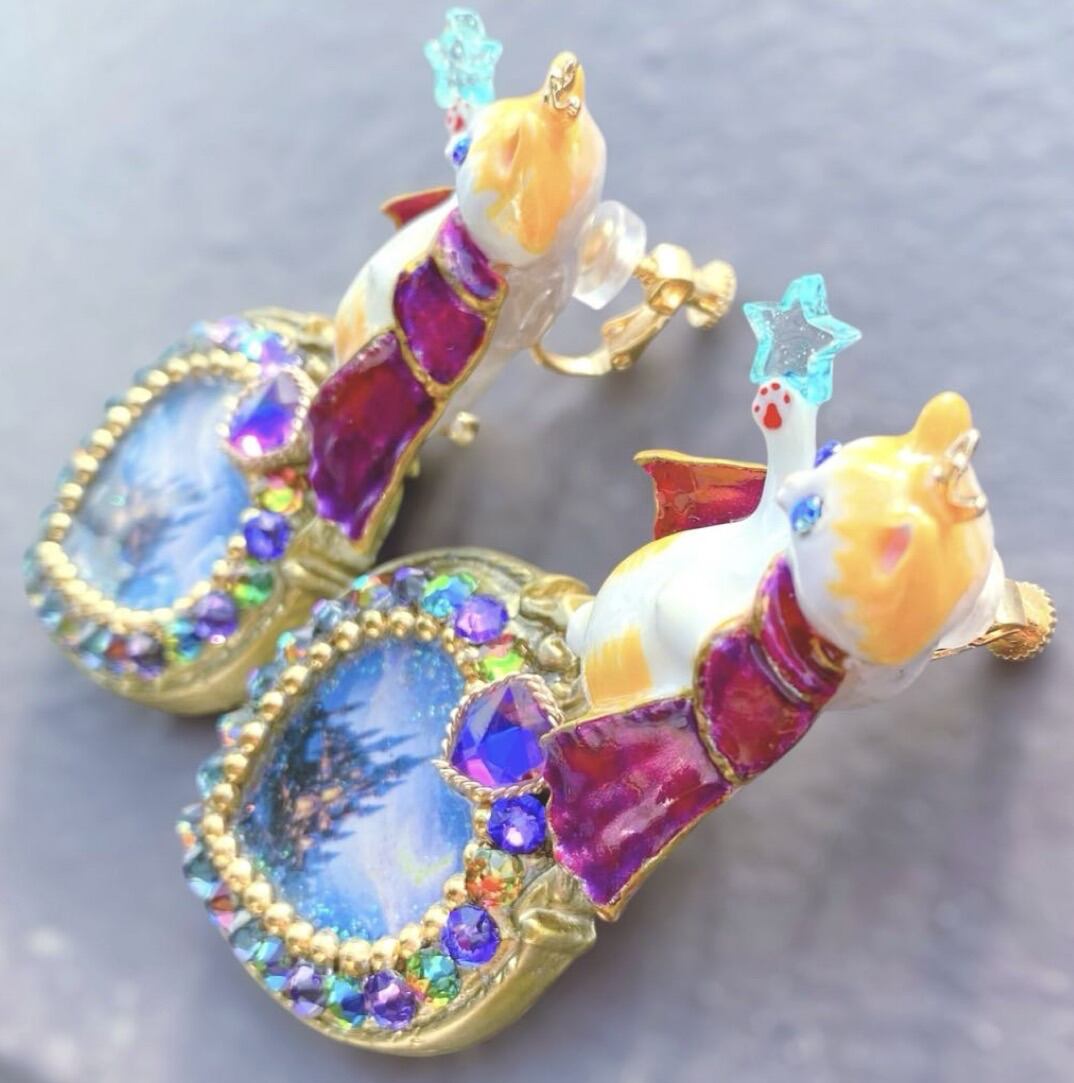 蒼く輝く城と夜空のきらめきを閉じ込めた物語のあるアクセサリーです。